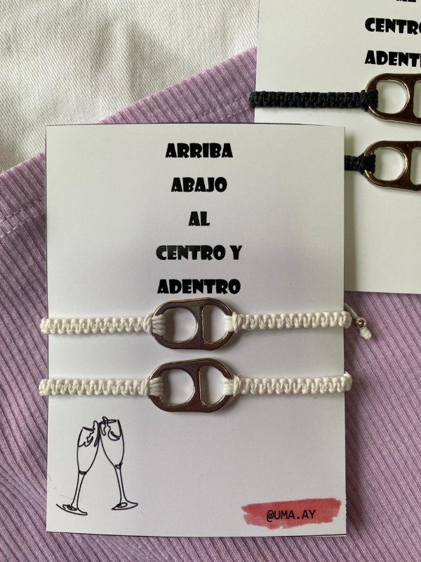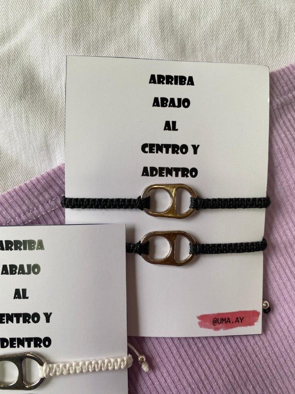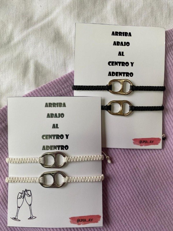 Pulseras de macramé con dije de fundición, las pulseras son regulables, tienen un nudo corredizo para ajustar la pulsera a la muñeca.
