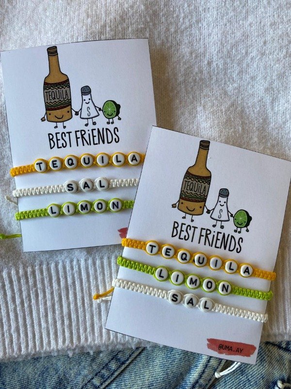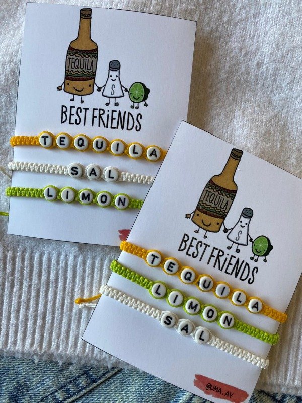 Pulseras de macramé con dije de fundición, las pulseras son regulables, tienen nudo corredizo para ajustarlas a la muñeca.