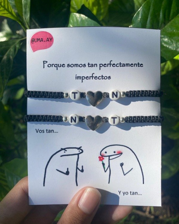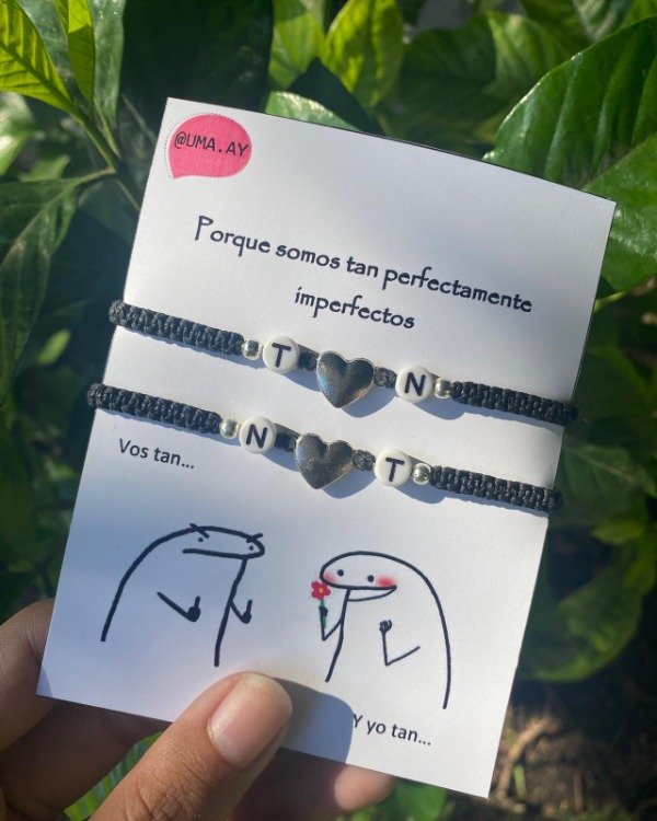 Pulseras de macramé con dije de fundición y letra de plástico , las pulseras son regulables, tienen un nudo corredizo para ajustar las pulseras a la muñeca.