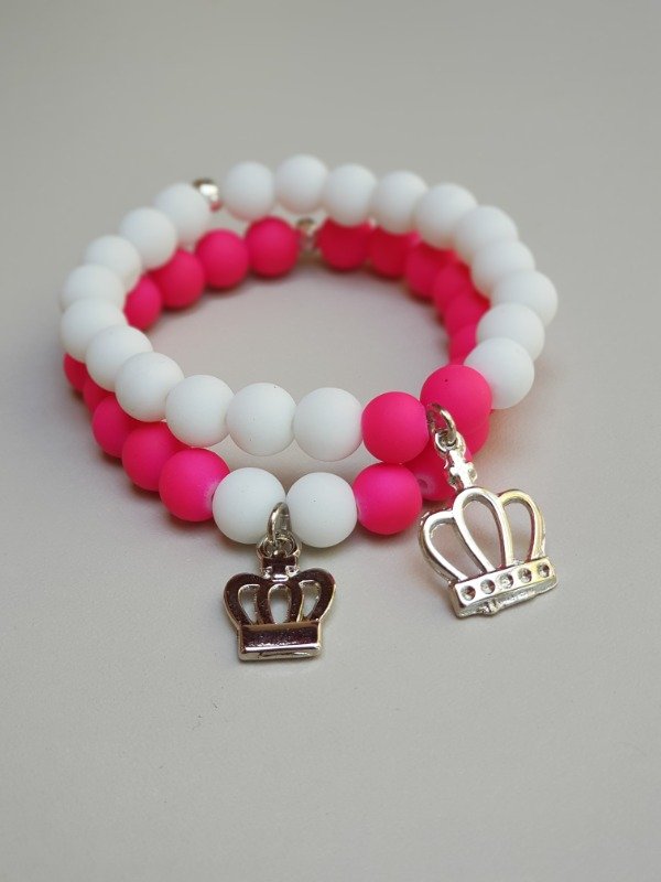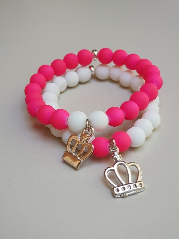 Pulseras de tanza elástica con perlas engomadas y dije de fundición